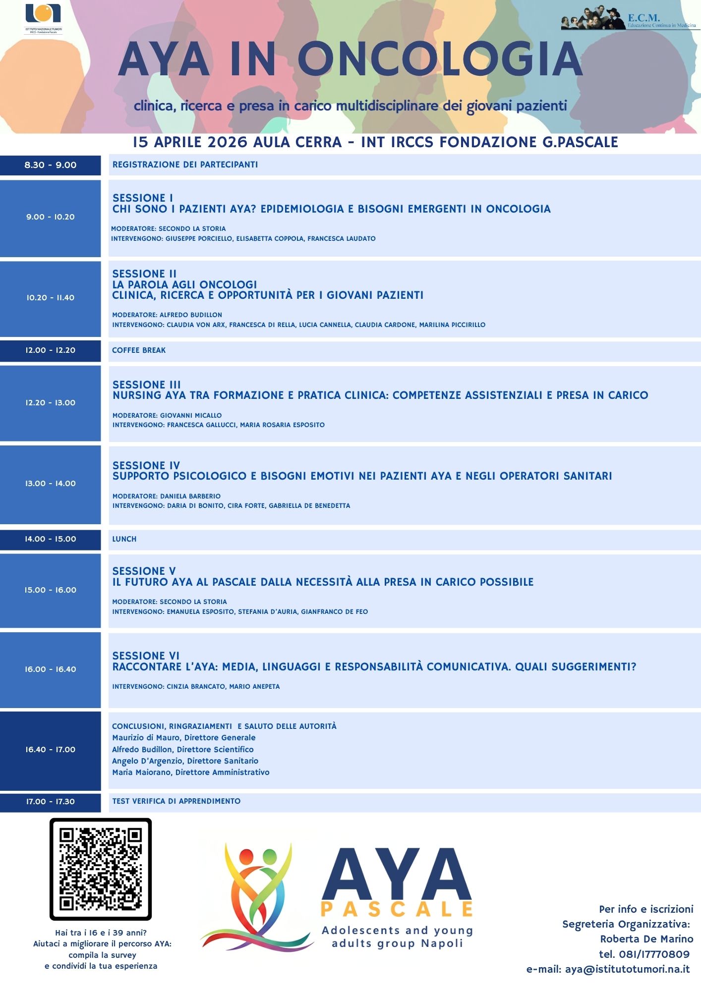 Il progetto AYA dell’IRCCS Pascale intende promuovere un modello assistenziale multidisciplinare integrato, che includa competenze cliniche, oncofertilità, accesso a sperimentazioni cliniche dedicate, qualità dell’assistenza infermieristica, supporto psicologico e strategie comunicative efficaci.