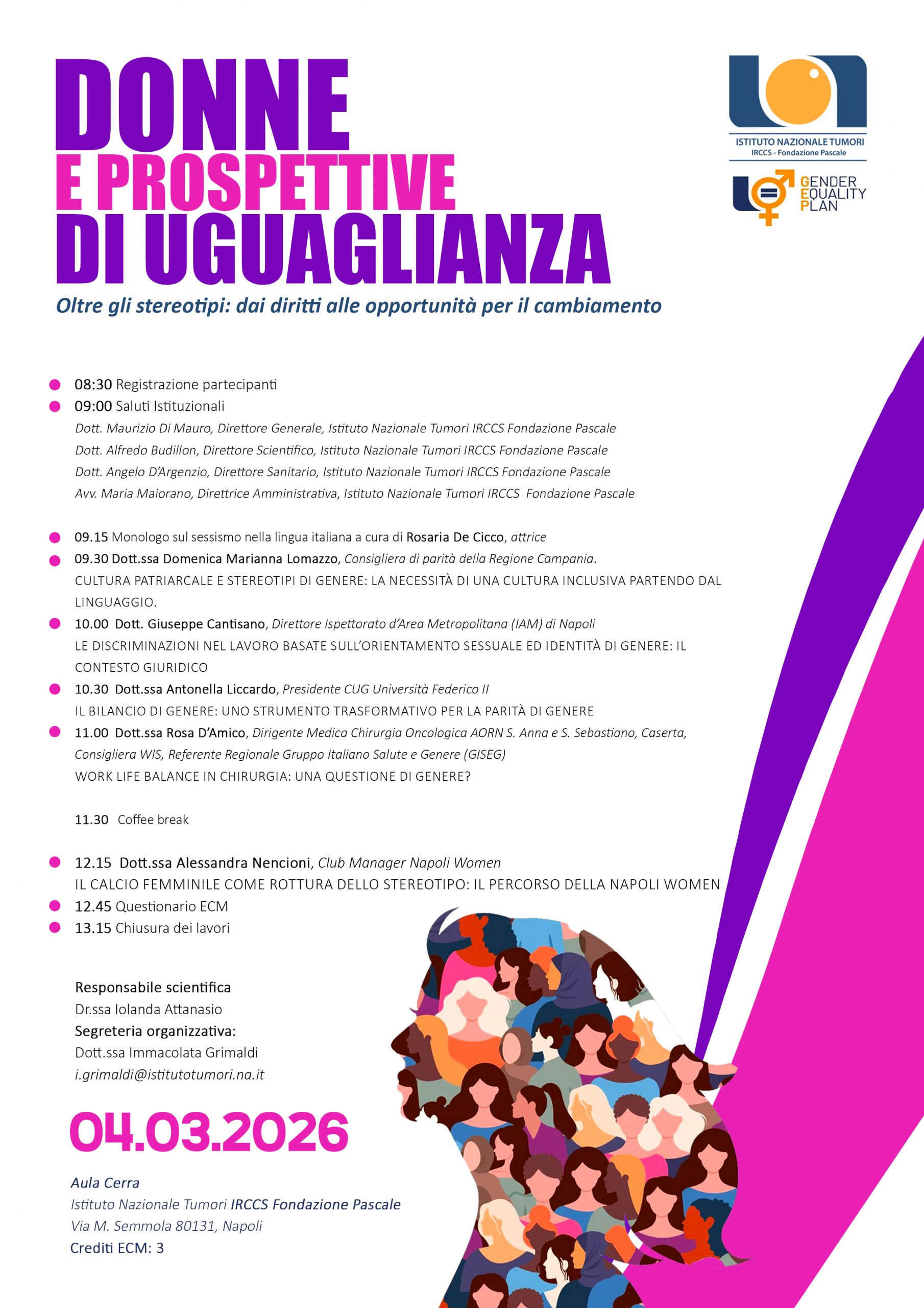 Segreteria organizzativa: Immacolata Grimaldi tel. 081/17770165, e-mail i.grimaldi@istitutotumori.na.it