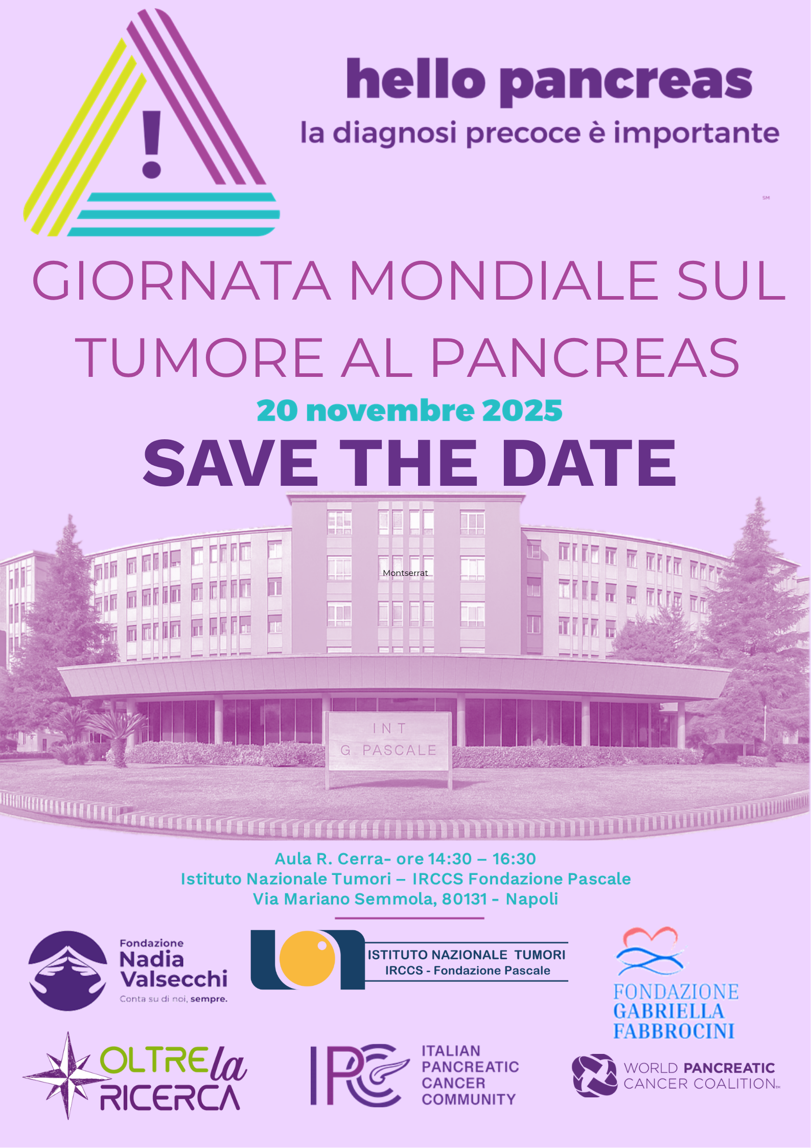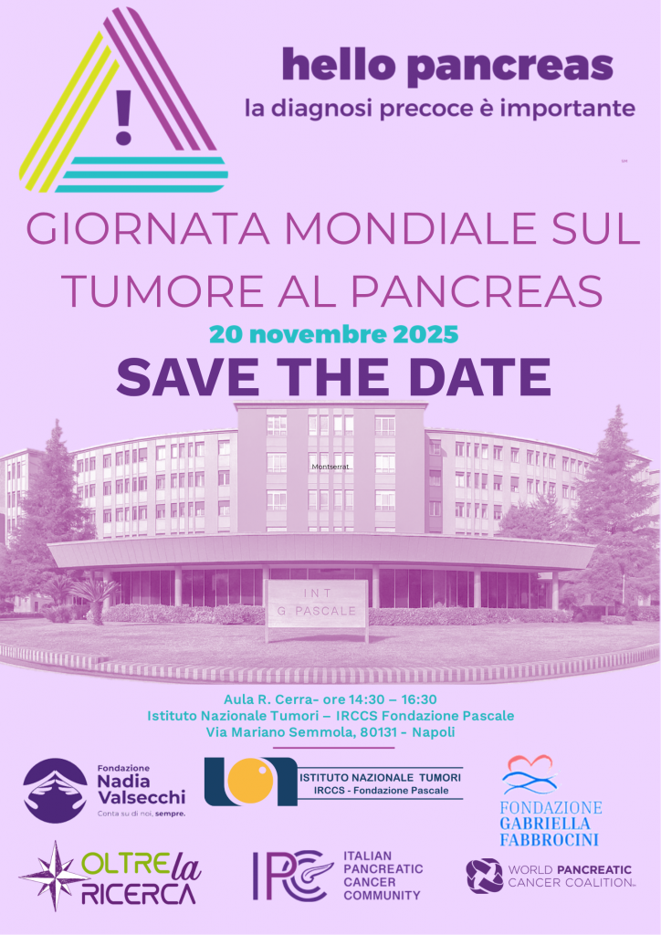 L’Istituto aderisce anche quest’anno alla campagna mondiale di sensibilizzazione sul tumore al pancreas. Il 20 novembre, in Aula R. Cerra, dalle 14,30 alle 16,30, in occasione della Giornata Mondiale del Tumore al Pancreas, si terrà il convegno “Hello Pancreas, la diagnosi precoce è importante”.