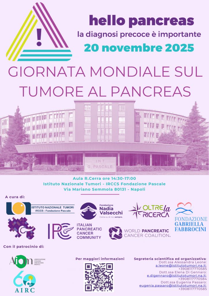 L’Istituto aderisce anche quest’anno alla campagna mondiale di sensibilizzazione sul tumore al pancreas. Il 20 novembre, in Aula R. Cerra, dalle 14,30 alle 16,30, in occasione della Giornata Mondiale del Tumore al Pancreas, si terrà il convegno “Hello Pancreas, la diagnosi precoce è importante”.